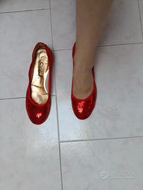 Scarpe basse donna, tipo ballerine, con paiellettes rosse, usate pochissime ancora in Ottime condizioni. Brand Cinti - N. 39.
