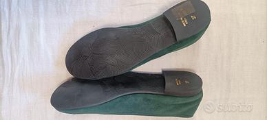 Ballerine in camoscio color verde bosco, fiocco in cannetè.