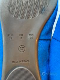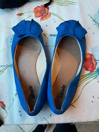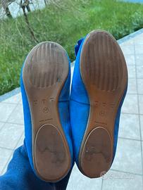 Usate in ottime condizioni. Design Elegante: Il delicato fiocco aggiunge un tocco di femminilità, rendendo ogni passo leggero e raffinato. Materiali di Alta Qualità: Realizzate in camoscio indaco, queste ballerine offrono una morbidezza impareggiabile e una vestibilità perfetta. Suola in Cuoio: La suola in cuoio garantisce durata e stabilità, permettendoti di camminare con sicurezza e stile. Non lasciare che il tuo guardaroba si accontenti; aggiungi un pizzico di classe con le nostre ballerine con fiocco in camoscio indaco. Viste un po grande