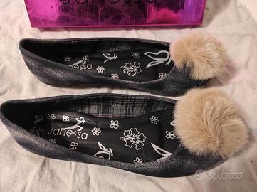 Scarpe ballerine nere con pon-pon color crema n°37