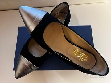 Ballerina da donna, in camoscio nero e punta argentata, numero 40, marca Ellen.