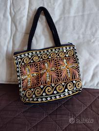 Ballerine da mare e pochette con ricami dorati e paillettes. Nuovo mai utilizzato. Misura ballerine 37.5/38
