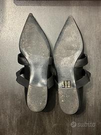 Ballerine a punta da donna in pelle nera e cuoio con borchie. Taglia 38 In ottimo stato