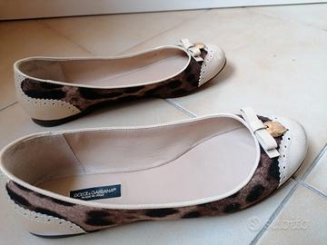 Ballerine originali Dolce e Gabbana, usate come da foto n 37, con scatola originale, colore beige di pelle più tessuto maculato e cuore d&g