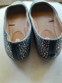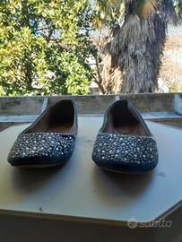 Ballerine gioiello donna azzurre con borchiette argento,n.39 indossate 1 volta.