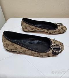 Ballerine originali GUCCI numero 35.5, in tela monogram con dettaglio fibbia argento.