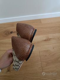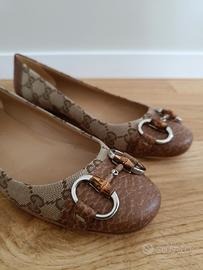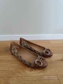 Bellissime ballerine Gucci in tela con monogram, modello con punta tonda e il caratteristico morsetto.