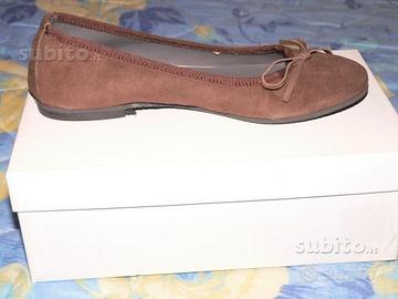Vendo nr. 1 paio di ballerine in camoscio nr.38 modello ragazza/donna color marrone mai indossate a 18 . Se volete accetto consegna a mano in zona Arezzo altrimenti spedisco. Se guardate le altre mie offerte e viene effettuato un acquisto multiplo la spesa scende lievemente.