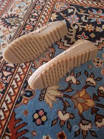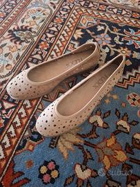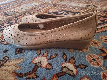 Ballerine con zeppa alta 4 cm, marca THE FLEXX, in morbida pelle scamosciata e traforata, color corda.