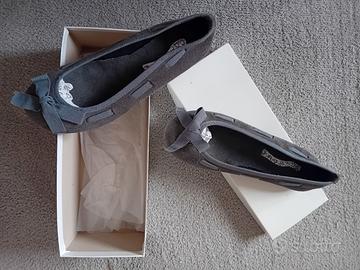 Ballerine in pelle internamente ed esternamente, suola esterna in gomma, n. 38, color grigio scuro. Nuove con confezione originale