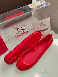 Iconiche ballerine Kartell × normaluisa, modello “Glue Cinderella”, nel colore rosso lucido con stellina sul davanti.