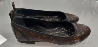 Ballerine Louis Vuitton modello "new revival" in tela monogram e finiture in pelle marrone scuro.