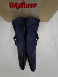 Ballerine da donna Melluso, in pelle scamosciata color Avio, numero 37, soletta in lattice. Tomaia in pelle, interno in pelle. Disponibile scatola originale