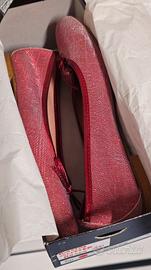Eleganti ballerine Lurex rosso, rifiniture e stringa in tessuto ! Floris Italis