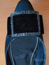 Ballerine René Caovilla in raso nero con fibbia in strass, num.36. Complete di scatola. In ottime condizioni.