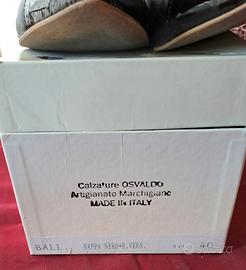 scarpe ballerine in nappa nera con punta in vernice ed elastico nel tallone per una massima presa, il tacco misura 2 cm