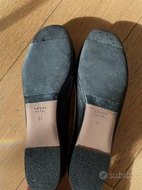 Collezione esclusiva: eleganti Ballerine Gucci in pelle nera con cristalli intrecciati G. Soletta in pelle con caratteristica punta squadrata.