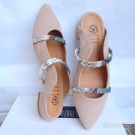 Ballerine Sandro Ferrone, color cipria con inserti in pitone, numero 38, materiale vellutino con plantare in vera pelle. Usate una volta x matrimonio.
