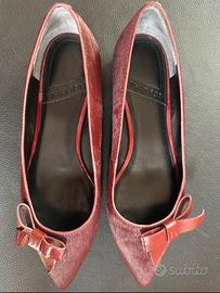 Ballerine in cavallino, tinta unita con fiocco, interno in pelle, punta stretta. Taglia 39. Utilizzate raramente. Condizioni ottime
