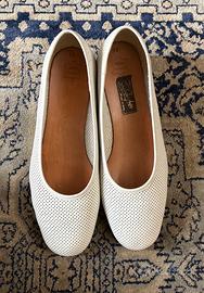 Ballerine/Slingback Bianche vintage in Vero cuoio con design semplice ed elegante, con soletta in vero cuoio e una minima zeppa interna. Condizioni ottime, un classico versatile. Made in Italy.
