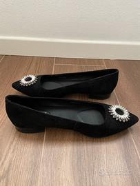 Ballerine slingback in camoscio di colore nero, calzata regolare.