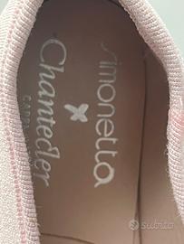 Ballerine in velluto con sua sacca tessuto naturale , tipo friulane, in colore rosa antico marca Simonetta - misura 30