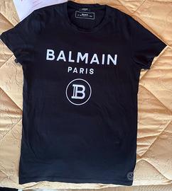 T shirt Balmain paris chiaramente originale taglia S colore nero. In condizioni eccellenti e perfetta. Con logo in rilievo sul davanti in tessuto ricamato Disponibile a farla provare e visionare Prodotto di alto valore, ORIGINALE basta toccarla per capire la qualita’ del tessuto inconfondibile. Acquistata da Papini a Catania in corso Italia. Vendo causa inutilizzo, prezzo super, super affare Compresa di etichette e tutto. Per veri intenditori Misure prese con metro da sarta: Spalle 40 cm Torace ( da ascella ad ascella) : 50 cm Lunghezza : 66 cm No perditempo, massima serieta’ , se volete altre foto contattatemi pure. no scambi, no affaristi. Annuncio sempre valido. Tel. 3401817001 anche per sms o whatsapp