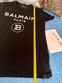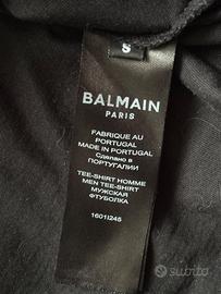 T shirt Balmain paris chiaramente originale taglia S colore nero. In condizioni eccellenti e perfetta. Con logo in rilievo sul davanti in tessuto ricamato Disponibile a farla provare e visionare Prodotto di alto valore, ORIGINALE basta toccarla per capire la qualita’ del tessuto inconfondibile. Acquistata da Papini a Catania in corso Italia. Vendo causa inutilizzo, prezzo super, super affare Compresa di etichette e tutto. Per veri intenditori Misure prese con metro da sarta: Spalle 40 cm Torace ( da ascella ad ascella) : 50 cm Lunghezza : 66 cm No perditempo, massima serieta’ , se volete altre foto contattatemi pure. no scambi, no affaristi. Annuncio sempre valido. Tel. 3401817001 anche per sms o whatsapp