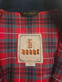 Iconico giubbotto Baracuta G9 Harrington, originale made in England, colore Blu Navy. Tessuto esterno idrorepellente 50% cotone e 50% poliestere. Fodera interna con motivo Fraser Tartan in cotone traspirante. Taglia UK 36 (S), vestibilità aderente. Misura ascella-ascella: 51,5cm Lunghezza posteriore: 63,5cm Ottime condizioni, usato solo poche volte l'anno. Non presenta macchie, strappi o segni di usura evidenti sui bordi in maglia. I bottoni e la zip (originale a doppio cursore) sono perfettamente funzionanti.