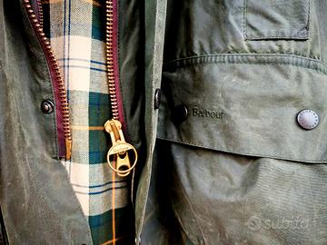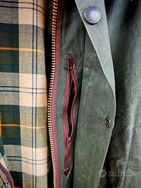 Barbour Beaufort originale verde sage C46 Splendida giacca in cotone cerato Barbour Modello Beaufort original Colore green sage (verde salvia) Indossata pochissimo, come nuova Misura C46 , corrispondente a una 56 italiana per quanto le taglie Barbour differiscano un po' dalle classiche. Adatto a chi indossa una XL- 52/54 Taglio regular Impermeabile e perfetta per la mezza stagione, ma utilizzabile anche inverno, è possibile aggiungervi un'imbottitura, così come un cappuccio, opzionali. Un classico senza tempo, uno dei modelli Barbour più iconici e amati di sempre. Nata come giacca da caccia, è diventata subito un classico country e molto apprezzata anche in città per la sua versatilità, bellissima indossata anche come copriabito per sdrammatizzare un look classico. Caratterizzata da un cotone cerato 6oz (peso medio), colletto in velluto a costo a contrasto, cerniera YKK in ottone, fodera tartan, tasche oblique scaldamani foderate, ampie tasche a soffietto dove è ripresa la stessa fodera dell'interno, tasca nascosta e foderata sul petto, enorme tasca posteriore idrorepellente accessibile da entrambi i lati (game pocket), patta per chiusura antivento del colletto, maniche con chiusura in velcro anti pioggia.