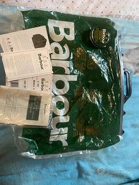 Normali segni di utilizzo e leggere tracce del tempo sul tessuto cerato, che conferiscono il tipico fascino vintage Barbour.