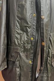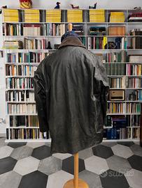 Barbour Border, verde, taglia C42/107 Ladies and gentlemen, I present to you THE HISTORY! Questo pezzo di storia inglese, acquistato a Cambridge nel 1993 e dotato di “carta di identità” originale del tempo, presenta riparazioni effettuate professionalmente con cotone cerato Barbour. Cerata e pulita, ha due piccoli fori su una manica visibili in foto. Trattasi di un autentico esemplare di Barbour reloved, pronto per vivere un’altra ventina d’anni! Il Border è una giacca adatta a tutte le stagioni ed è particolarmente amata da chi predilige un capospalla dalla linea più lunga rispetto ai modelli Bedale e Beaufort. Piccola curiosità: prende il nome dal confine tra Scozia e Inghilterra, che John Barbour, il fondatore di Barbour, attraversò per la prima volta nel 1870.