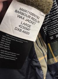 Barbour Reelin Wax Jacket, taglia L, blue navy Ottimo stato. Nessun buco o macchia o particolare segno di usura. Giacca pulita e pronta da indossare. La Reelin è stata introdotta nelle collezioni Barbour intorno al 2016. A differenza dei modelli storici come la Bedale o la Beaufort, la Reelin è un modello relativamente recente, nato per offrire una versione moderna e "invernale" (grazie all'imbottitura trapuntata integrata) dei classici capi d'archivio. Realizzata nel tradizionale cotone cerato Barbour Sylkoil da 6 once.