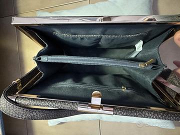 Deliziosa borsa di colore grigio, effetto tapiro, rigida ed elegante. Chiusura dorata e tracolla a spalla allungabile con ulteriori 2 lunghezze. Misura cm 22x22x10, mentre la tracolla cm 54+20+20