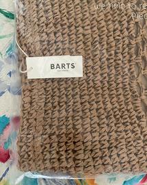 BARTS BORSA A MANO A SPALLA SHOP SHOULDER TOTE BAG IN SIMIL PELLE Sintetica intrecciata effetto RAFIA PAGLIA BROWN LIGHT BEIGE BICOLOR BROWN BEIGE / NERO BLACK con Doppio Manico superiore intreccio a tono CON TAG LABEL FRONTALE IN TESSUTO BIANCO con LOGO NERO A CONTRASTO