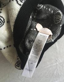 Berretto da donna Liu-Jo in maglia di misto viscosa e lurex®, motivo geometrico e logo lavorati in jacquard, pompon, finiture a costine.