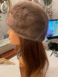 Elegante basco vintage in pregiato visone Zaffiro naturale. Ottimo stato, fodera interna pulita e priva di odore,cuoio morbidissimo, pelliccia folta e morbida. Un capo artigianale di qualità e di classe. Misura 54/566. Condizioni eccellenti