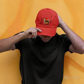 Cappello per adulti a cinque pannelli, caratterizzato da una visiera preformata con dettaglio sandwich, quattro occhielli ricamati per la ventilazione e una chiusura posteriore regolabile dotata di fibbia in metallo.