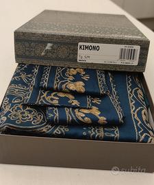 Bassetti Granfoulard Kimono Vestaglia mod. Brenta, fondo blu, 100% raso mako di Cotone.