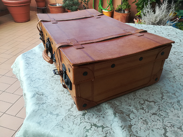 Vendo per inutilizzo bellissimo baule vintage di vera pelle, perfetto in ogni sua parte con maniglia, cerniere e chiusure funzionanti senza alcun problema. No perditempo, prezzo non trattabile