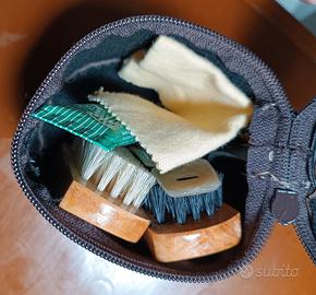 Bauletto vintage degli anni '70. Perfettamente conservato e MAI utilizzato. Al suo interno c'era per cura scarpe, n. 2 spazzole (una per scarpe scure e una per scarpe chiare) panno lucidante e mini calzare. Un accessorio vintage che utilizzavano i nostri nonni ma che ha ancora il suo fascino, senza contare l'ottimo stato di conservazione, sia esterno sia interno, dovuto al suo mai utilizzo, Ottimo acquisto/regalo per chi ama il genere vintage. Oggetto introvabile.
