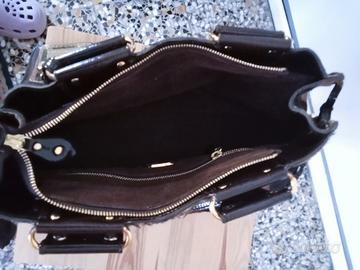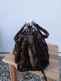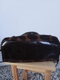 Bellissima handbag versatile e di effetto effetto cavallino, manici e contorni in vernice, interno in camoscio, in ottime condizioni,misure 33x18x26.