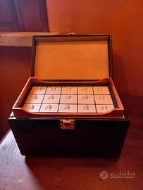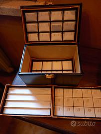 vendo bauletto portagioielli da viaggio vintage. in pelle nera e con scomparti esttaibili in radica.