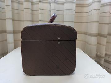 Bauletto rigido rivestito in stoffa. Dimensioni 28x21xh22 cm