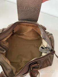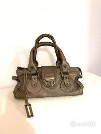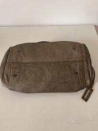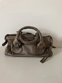 Bauletto in vera pelle, color bronzo metallizzato in ottime condizioni. Borsa vintage, comprata a metà anni 2000, in concomitanza con l’uscita della mitica paddington da cui prende ispirazione. La borsa ha la chiusura con fibbia e la zip, due pratici manici per portarla a mano o sul braccio. All’interno è foderata e ha una tasca con zip. Dimensioni circa: 40 cm lunghezza 15 cm altezza 19 cm profondità