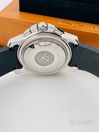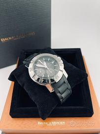 Baume & Mercier Capeland chrono automatico certificato, ref. 65352 degli anni 2000, impermeabile fino a 200 mt, cassa in acciaio da 40mm, vetro zaffiro, cinturino in caucciù originale con chiusura a deployante. Condizioni eccellenti. Provvisto di scatola e controscatola Baume & Mercier, ma non di garanzia.