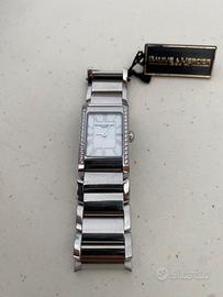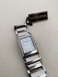 OROLOGIO DA DONNA BAUME & MERCIER "HAMPTON CLASSIC" AL QUARZO, CASSA E CINTURINO IN ACCIAIO, NUMERI ROMANI E BRILLANTI SULLA GHIERA. Orologio mai indossato con ancora cartellino
