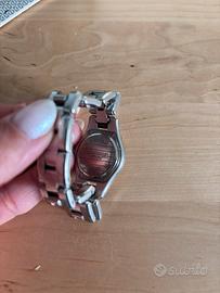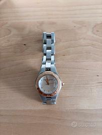 Come nuovo, Orologio da donna bicolore con cassa tonda da 27 mm, presenta un movimento al quarzo con funzione data e cinturino intercambiabile. Con scatola. Originale.