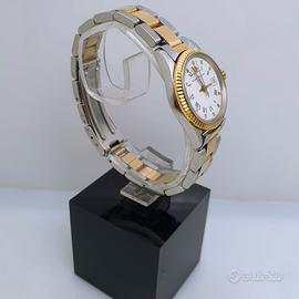 Orologio Baume & Mercier con datario, movimento al quarzo, referenza: 5216.3, dimensione cassa esclusa corona: 25 mm. Funzionante e in ottime condizioni. Senza scatola.