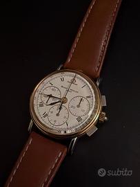 Vendo stupendo Baume & Mercier (ref. 6101 099) Cronografo manuale con movimento Lemania, cassa oro e acciaio 32mm. Orologio acquistato nel 1992, completo di scatola, contro-scatola, documenti, garanzia, e scontrino originale. Condizioni praticamente perfette, cinturino originale, revisionato e funzionante. Ritiro a mano zona e limitrofi. Astenersi perditempo, curiosi, affaristi, offerte assurde…solo realmente interessati. Prezzo trattabile